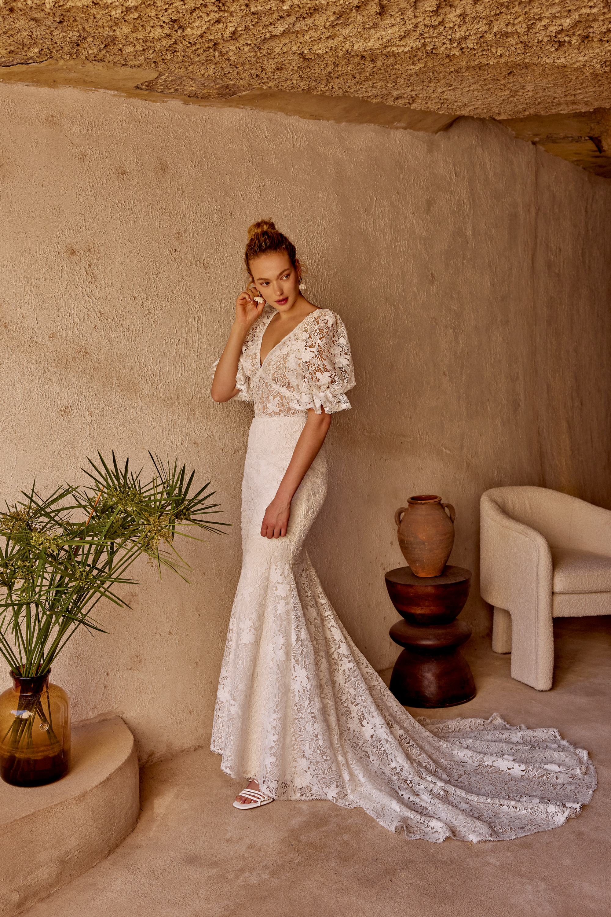 The Free-Sprited Bride: Embody your natural beauty with earthy colors, bold lace patterns, sculpted fabric florals, and organic tonal beading. Do you dream of a wedding as unique as your love story? Embrace the gown with light and flowy fabrics, ethereal skirts, adventurous ruffles, and sheer elements.