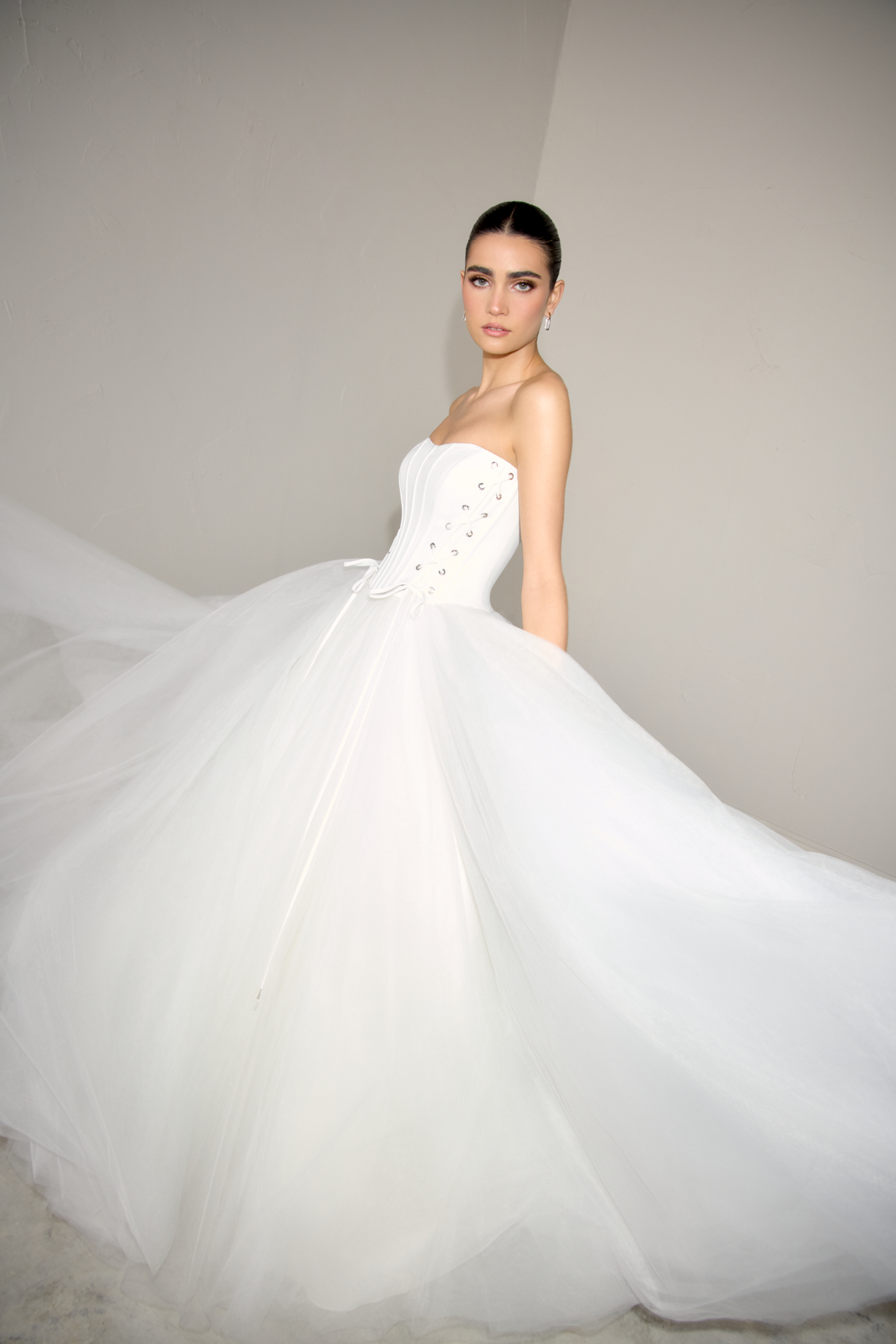 The Sophisticated Bride: A blend of clean, modern lines with exquisite detailing. Flattering ruching, structured corsets, demure necklines and contemporary cuts. This is a new take on classic elegance. Think statement bows, voluminous ruffles, and eye-catching trains create to create unforgettable moments.